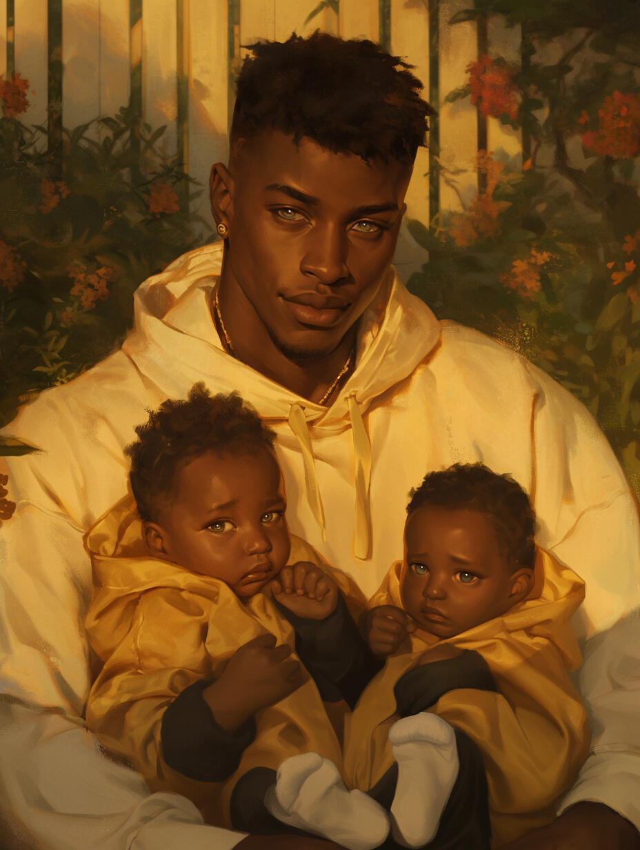 At sixteen, Zion became the (not so) proud father of twins. Was he ready? Fuck no. Barely saw the kids, or their momma, until a year later when his own momma gave him a good whooping. This is one of the first pictures he has of him and the twins, Isabella (Bella) and Angelo (Ángel).
